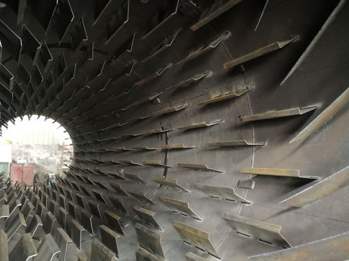 要想將干粉砂漿烘干到合理的水分,烘干機的安裝工藝和設(shè)計工藝非常重要,由于粉狀物料流動性不如固體物料,干粉砂漿烘干機的安裝需要設(shè)計一個合理的傾斜角度,能讓物料在被烘干的過程中勻速流動,這個流速需要達(dá)到剛好物料到出口處時被烘干,所以傾斜角度的設(shè)計很重要。然后是設(shè)計工藝,粉狀物料會由于重力的作用沉積,要想充分將其烘干,必須進(jìn)行打散揚起,讓高溫氣流從物料種穿過,這就對筒體內(nèi)的設(shè)計工藝提出要求,除了安裝揚料板,還要對排布位置,間距、密度等參數(shù)有一個合理的設(shè)計。
